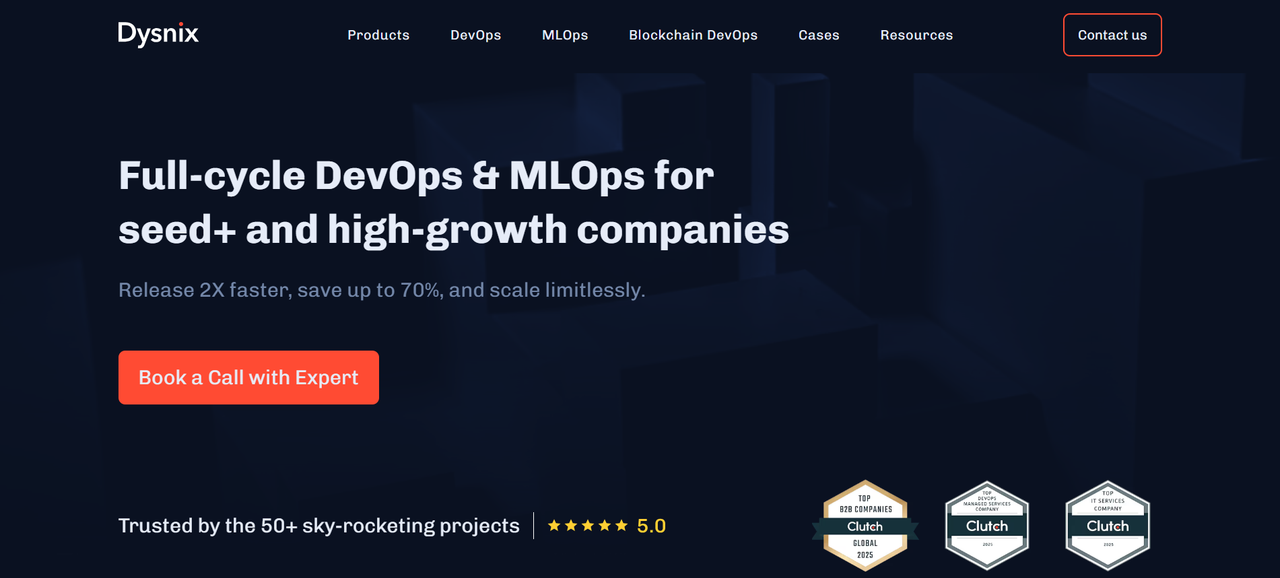Dysnix has an expert DevOps team that helps businesses to scale up and grow. The company was founded in 2016 and is located in Kharkiv. It has successfully released more than 60 projects with international partners. Dysnix delivers cloud consultancy and DevOps architecture services, AI/ML development, Blockchain, and Big Data solutions. The majority of the clients are small businesses across several industries: Finance, Gambling, IT, Advertising & Marketing, eCommerce, and Medical.