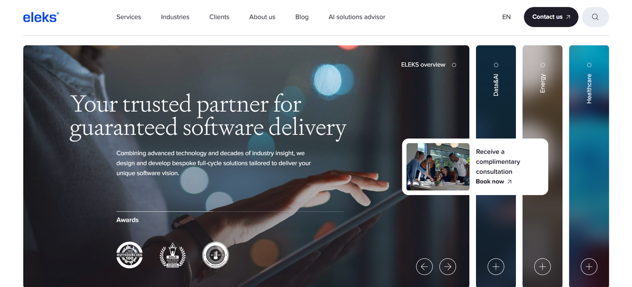 Eleks is a rather big company with 11 offices on three different continents. But the headquarters are still in Lviv, where it all started in 1991. Besides cloud consulting, the team of more than 1,600 specialists is ready to work on custom software development, QA, and product design. Eleks has experience in several industries, such as Supply chain, Logistics & Transportation, Finance, Retail, GPS, Navigation & GIS, Automotive industry, and Media.