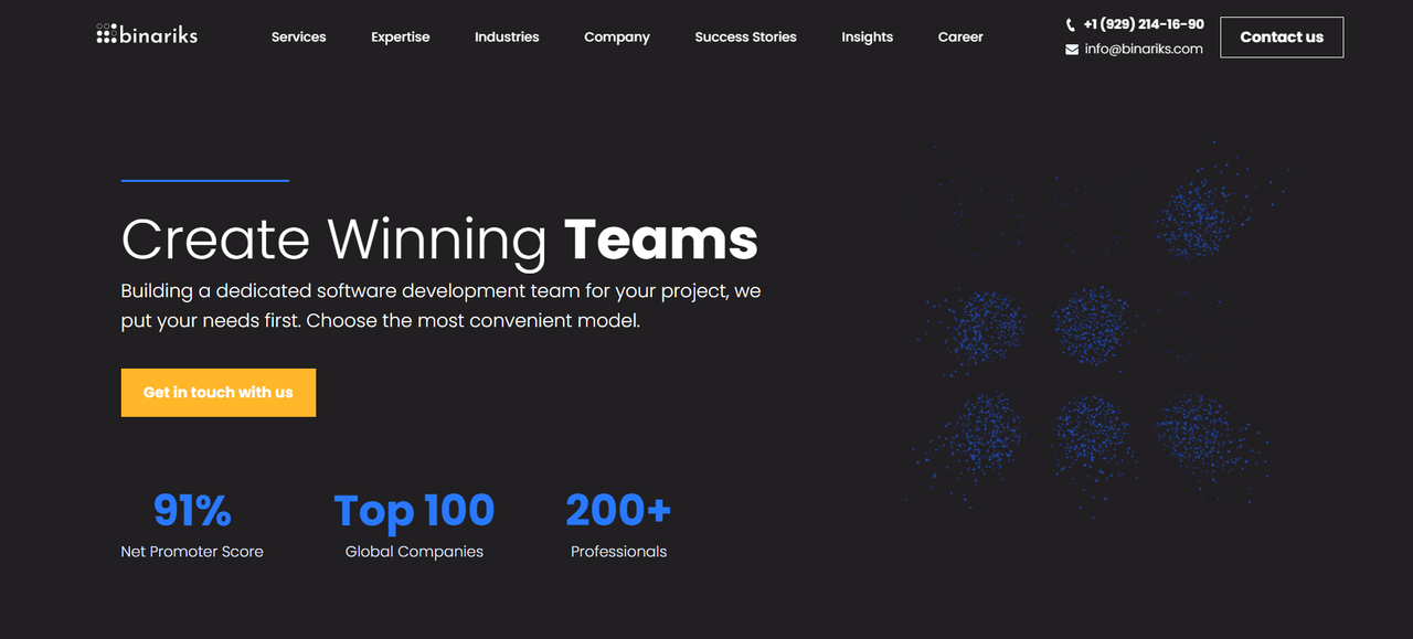 Binariks is a software development and consulting company with expertise in custom development, cloud & SI, and mobile app development. It has been operating since 2014 and acquired clients of all sizes, but mostly midmarket ones. It has a great reputation with 4.9 stars on Clutch. The team partnered with businesses in such industries as Medical and Financial Services, Education, and IT.