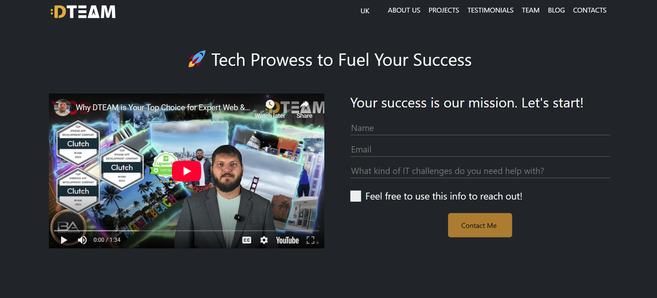 DTEAM is an experienced software company headquartered in Boryspil, Ukraine, with additional presence in Estonia and the USA. It delivers custom web and mobile applications, CRM/ERP systems, and enterprise software for clients worldwide. Core expertise includes Python/Django, PHP, Node.js, React, and mobile frameworks. Industries served include healthcare, logistics, finance, manufacturing, and sports.